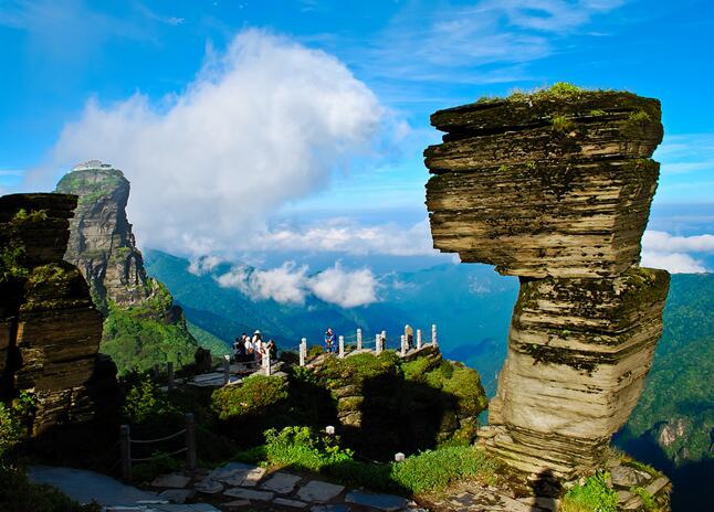 以梵净山红云金顶、蘑菇石、黔金丝猴、三特索道、万米睡佛、万卷经书等自然生态和地域文化元素为题材,设计能够准确反映梵净山旅游特色和文化内涵的文化好创意产品。要求主旨突出,内涵丰富,识别度与收藏价值高。