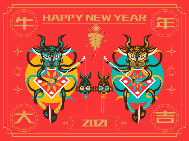 一款名为《国风年画――牛年大吉》的设计