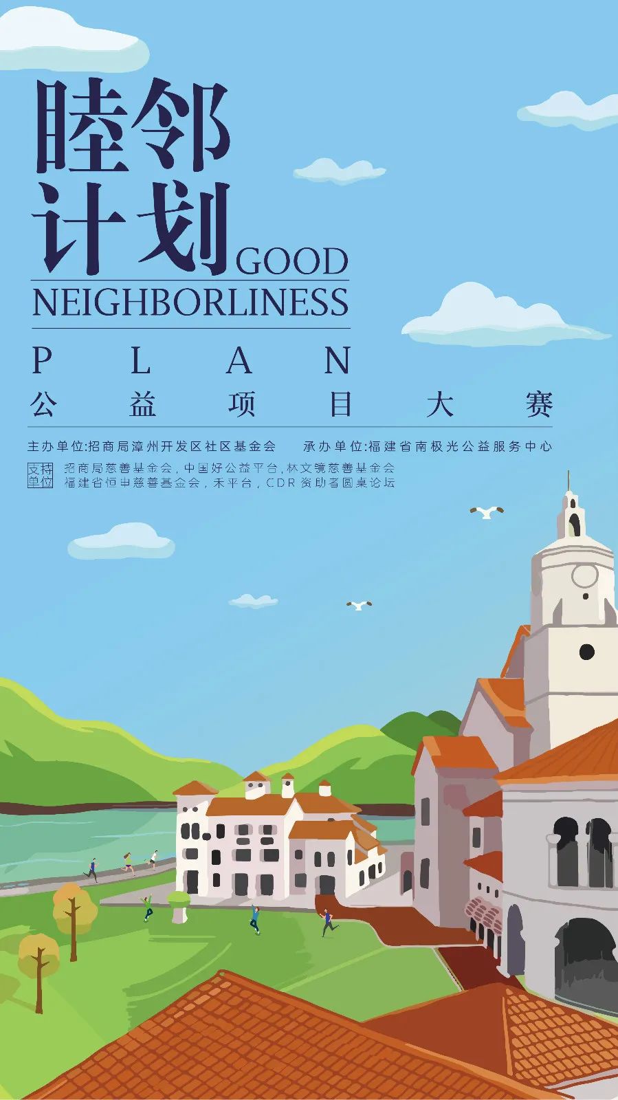 “睦邻计划”公益大赛是招商局漳州开发区社区基金会2020年主推的品牌活动,其初衷是为了引入更多社会组织参与漳州开发区公益事业,有效满足和解决社区服务需求。培育优秀社会组织,向社区居民提供精准化、标准化、专业化的社会公共服务内容。以具体服务为试点,在漳州开发区下辖的各社区内推广具有社会效益和公益影响力的项目,内容可涵盖但不限于志愿者建设、邻里互助、社区营造、教育、养老、环保、医疗、文化等,在社会治理、社区营造、居民自治等方面,能体现开拓性和创新性的公益项目。