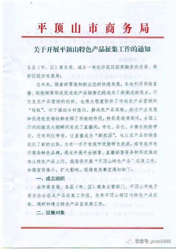 为进一步开发我市优势特色产品,培育我市电子商务特色品牌,通过开展平台销售、直播销售等多种形式推动本土特色产品上行,平顶山市商务局现开展“平顶山特色产品”征集工作。后期电子商务协会将对征集到的特色品产品精心培育,多渠道对接,争取都能线上线下推广。