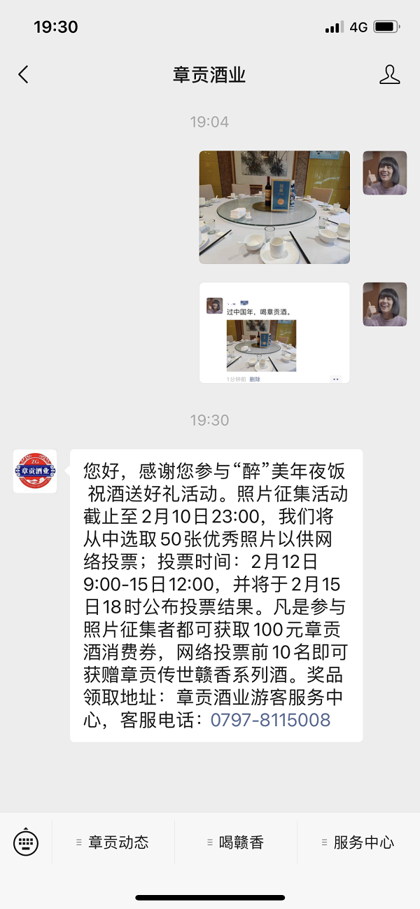 获奖的酒友后期公众号客服将会与您联系请注意查看章贡酒业公众号消息外地照片中奖者可享礼品包邮寄送