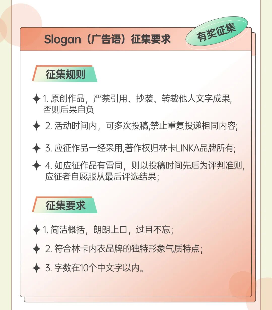 林卡内衣广告语征集一句话