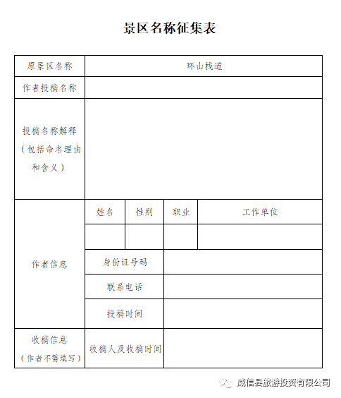 方式一:投稿者按要求填写好征集表后,将投稿作品发送至邮箱wxxltgs@163.com,邮件请注明景区名称投稿;