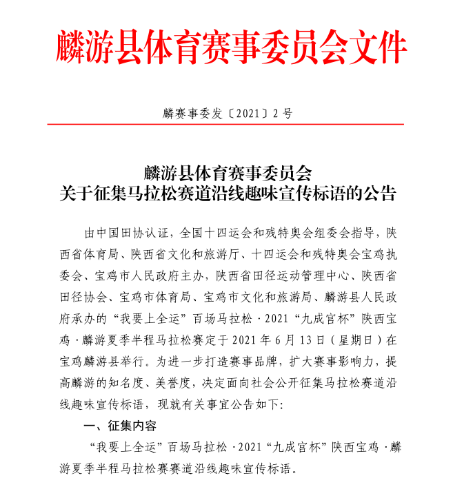 即日起2021“九成宫杯”陕西宝鸡·麟游夏季半程马拉松赛道标语征集活动正式开启啦!赛道标语征集活动征集内容