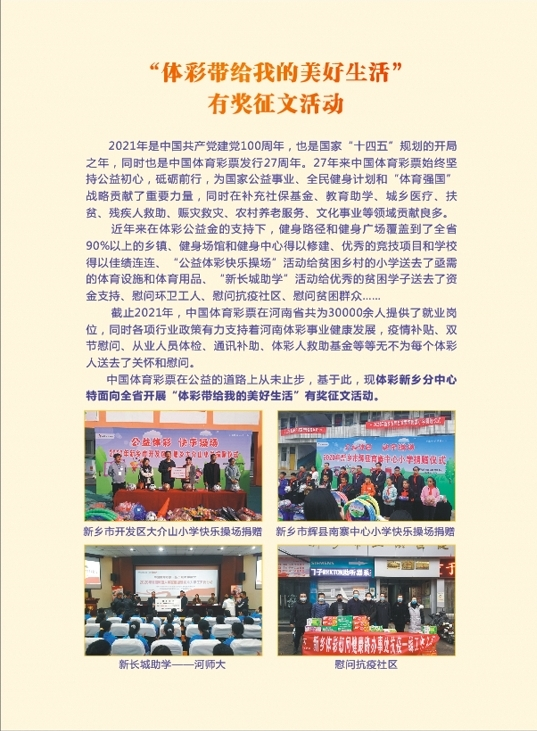 2.投递时须备注作者姓名、联系方式、邮编及地址,便于后期联系及奖品领取。外省市获奖者将由体彩新乡中心邮寄,新乡市内获奖者请至新乡市体彩中心现场领取。