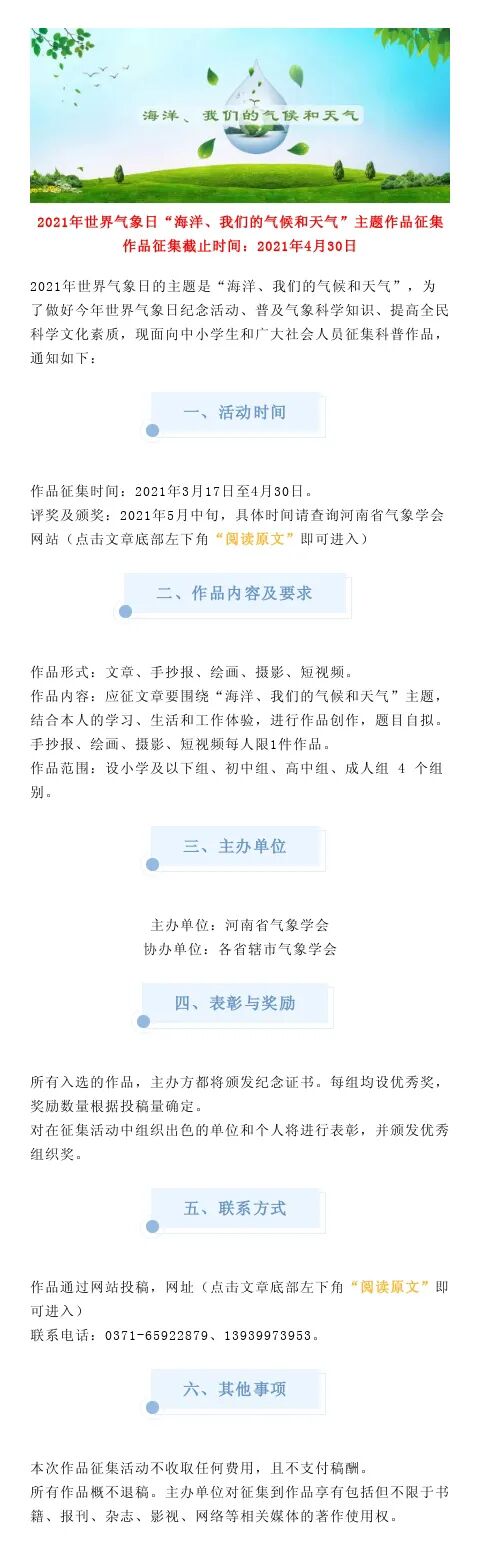 2021年世界气象日“海洋、我们的气候和天气”主题作品征集