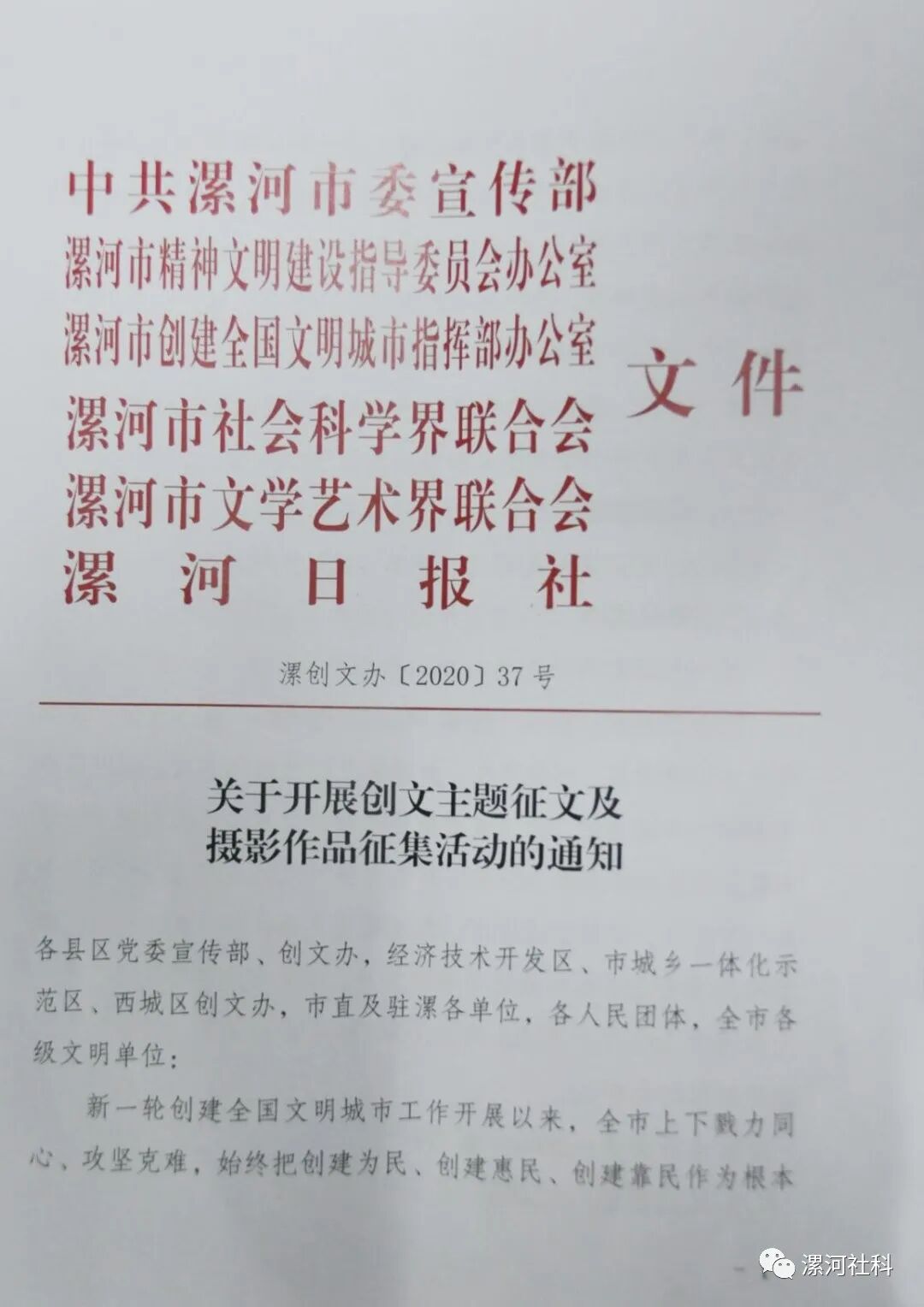 关于开展创文主题征文及摄影作品征集活动的通知