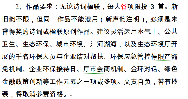 选用诗词、楹联各150件作品编写成《生态环境系统廉政诗词楹联集》,并免费赠送作者一册(无稿酬)。部分获奖及优秀作品选登在江苏省生态环境厅官方公众号、金陵诗社官方公众号及《江苏环境》、《金陵诗苑》,来稿不退,组委会有处置与使用权。