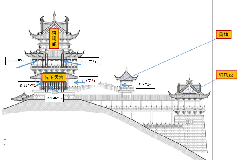 1.建筑名及匾额内容应结合“鸡鸣阁”仿古建筑特色,彰显义乌历史文化精神内涵,对项目有较强的推介作用和宣传效果;