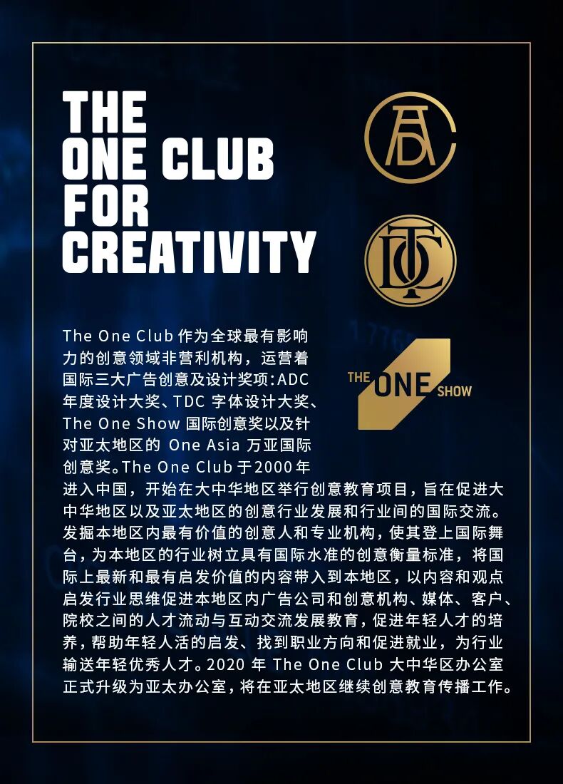 The One Club for Creativity亚太区办公室:电话:010-84046620邮箱:youth@oneshow.cn
