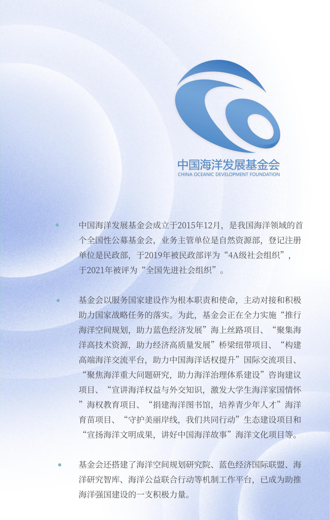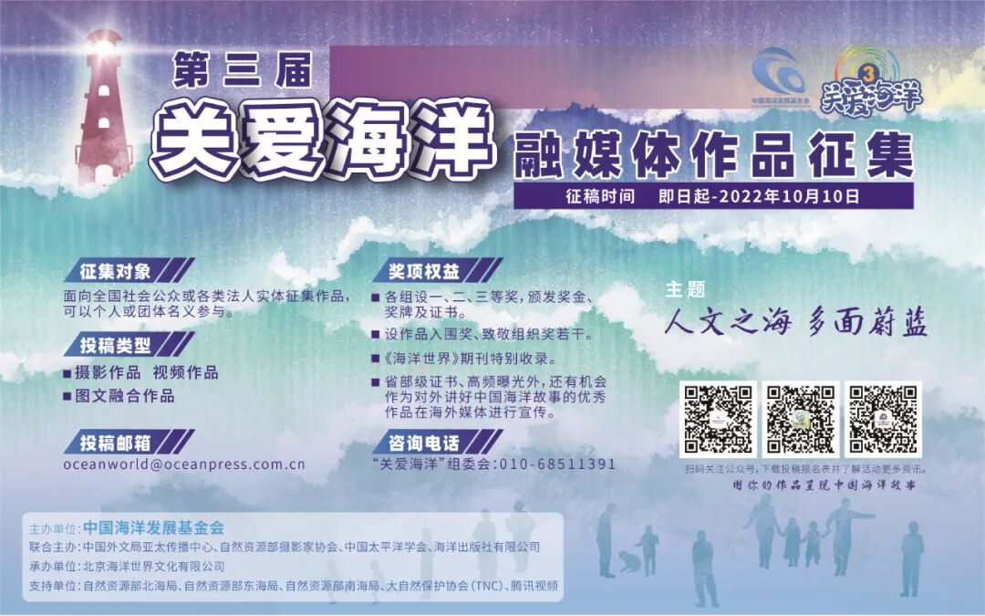 “关爱海洋”融媒体大赛是由中国海洋发展基金会主办的全国性海洋文化公益宣传活动。自2020年起已成功举办两届,来自全国20余个省、自治区、直辖市的近3000名创作者参与过大赛活动,作品收录逾8000幅。大赛自创办初始就以宣传我国海洋文化成果为核心立意,经过两年的成功举办,本活动已成为社会公众进一步关心海洋、认识海洋、经略海洋的重要渠道,持续助力海洋强国建设。